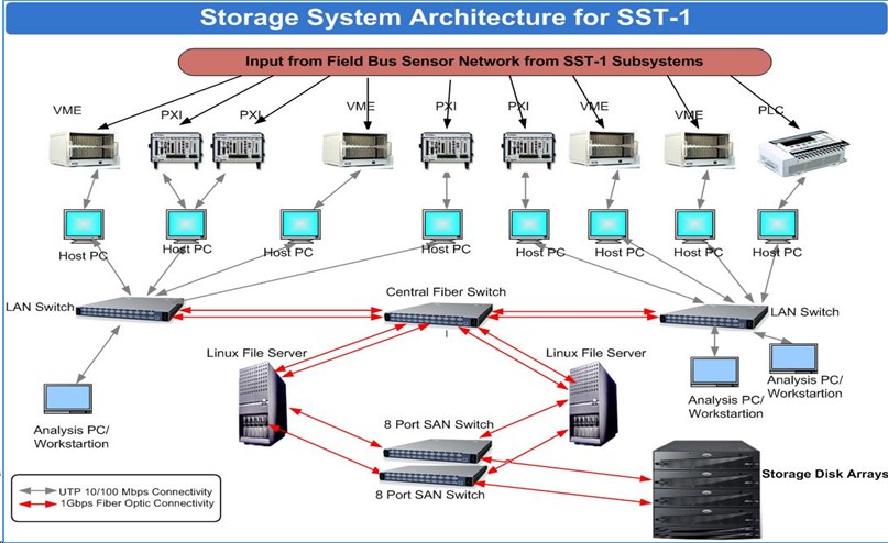24 X 7 availability of Centralized data storage system for SST-1. The system is based on Storage Area Network (SAN) technology with multi-tier architecture to achieve low latency for frequently accessed data.