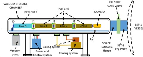 The IVIS consists of a 6-DOF articulated arm with reach up to 4m, mounted on a linear guide and a vacuum storage chamber (VSC).